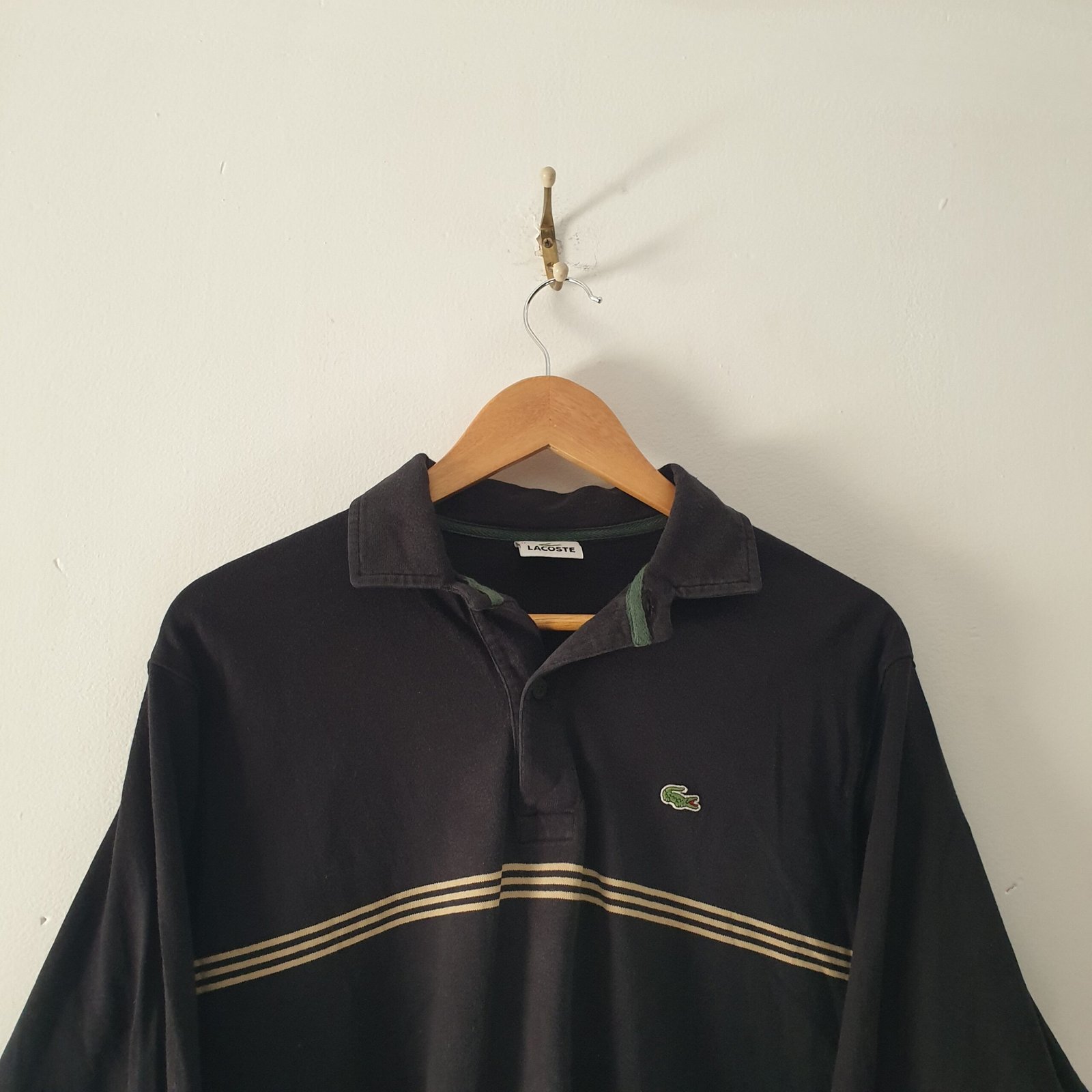 Lacoste Vintage mens Long sleeve Polo shirt with buttons size Medium Cotton